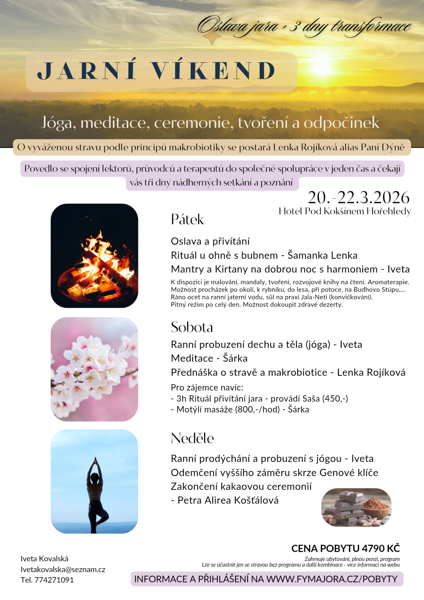 Cena pobytu komplet (ubytování, strava, program (krom rituálu Saši a masáží) ): 4 790,-